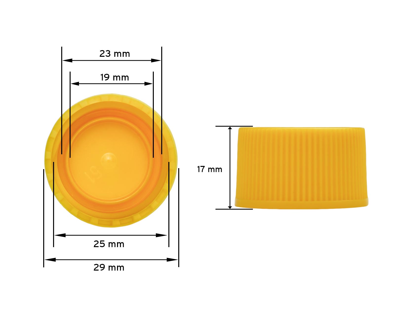 Eigenschaften: "10 x 250 ml runde Plastikflaschen aus HDPE mit gelben Schraubverschlüssen"