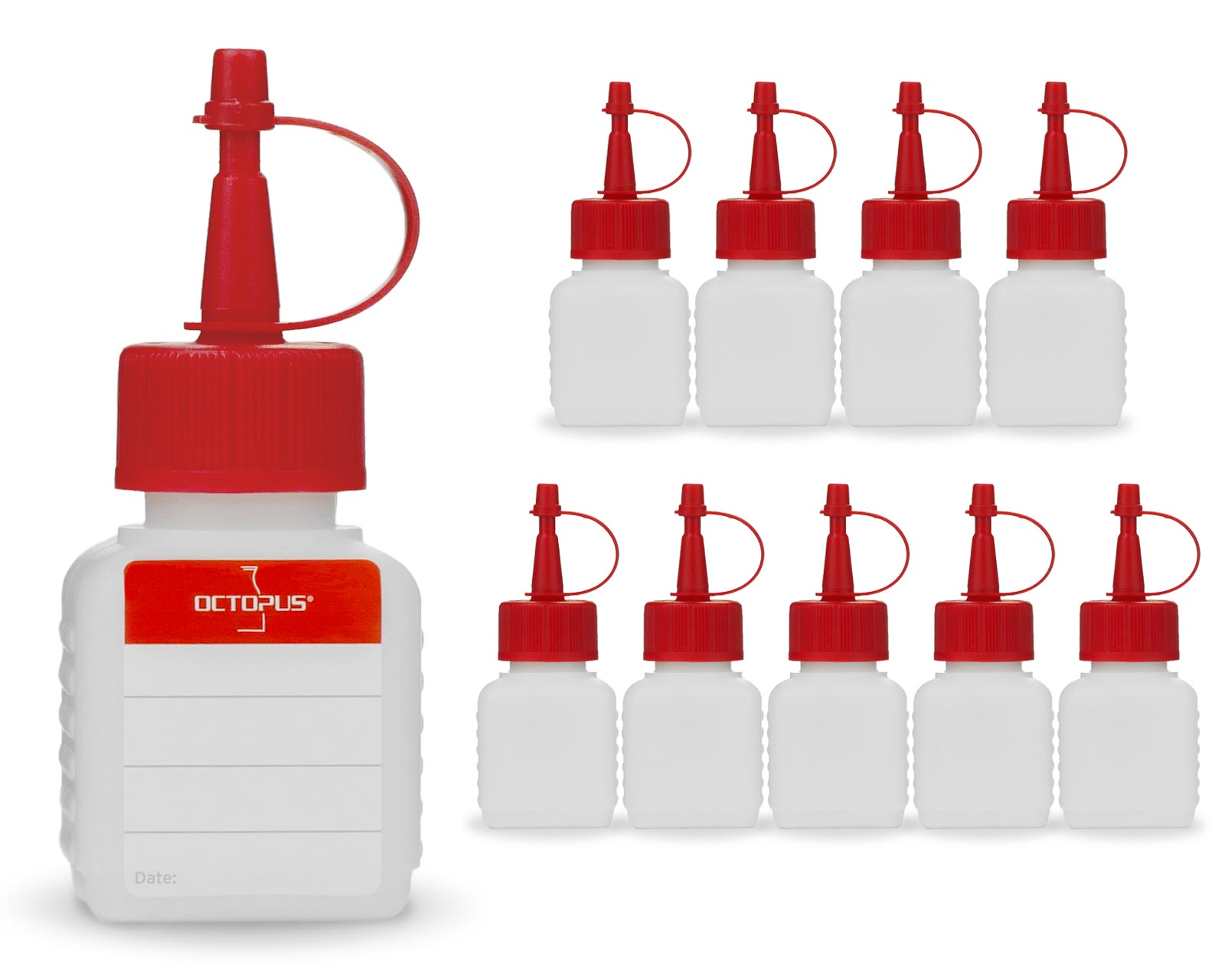 10 x 50 ml Plastikflaschen aus HDPE mit roten Spritzverschlüssen, inkl. 10 Beschriftungsetiketten