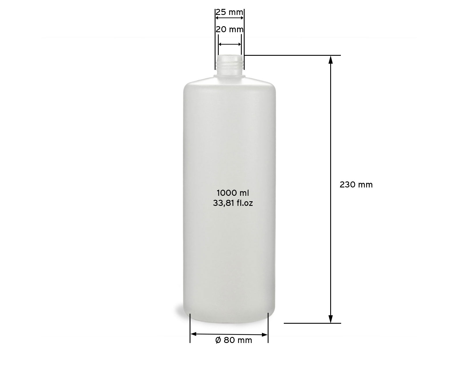 Eigenschaften: "1000 ml Rundflasche mit 25 mm Gewinde aus HDPE"
