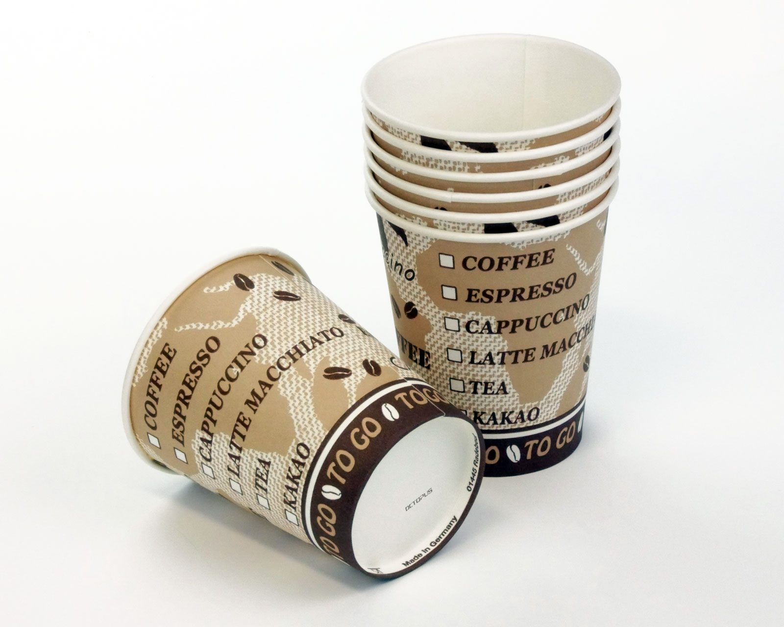 Zum Schutz Ihrer Gesundheit ist der Pappbecher mit in Deutschland zugelassener, lebensmittelechter Druckfarbe bedruckt. Nicht nur der Druck, auch die gesamte Produktion und Verpackung finden in Deutschland statt. Alles zusammen eben typisch "Made in Germany"