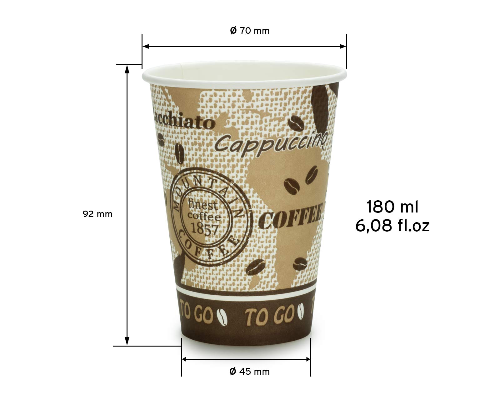 - Becherdurchmesser oben: 70 mm
