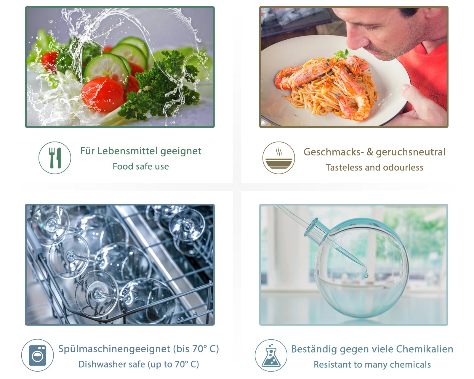 Die Chemikalien-Flaschen haben eine Gefahrgut-Zulassung bzw. UN-Zulassung für Feststoffe. Im Labor, in der Küche oder im Hobbyraum werden diese Flaschen zum aufbewahren von Flüssigkeiten, pastösen Medien oder Granulaten verwendet.
