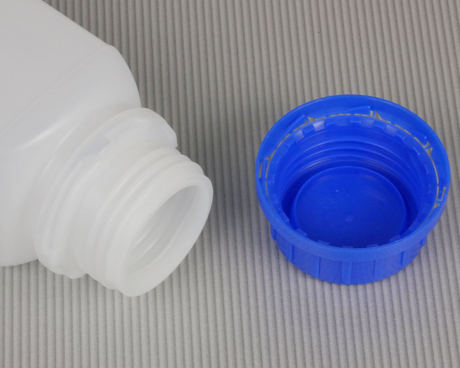 Die sehr stabilen, HDPE Chemikalienflaschen verfügen über einen sicheren, blauen Schraubdeckel-Verschluss aus PP mit Innenkonus. Der Innenkonus sorgt für hohe Abdichtung zwischen Flasche und Deckel.