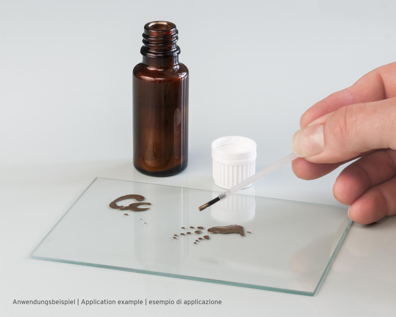 Das robuste, lebensmittelechte Braunglas schützt Ihr Medium wie Nagellack, Lösungen, Farben oder Kleber, sowie viele weitere Flüssigkeiten wie Aromen, Essenzen oder Öle zuverlässig vor Lichteinfall.