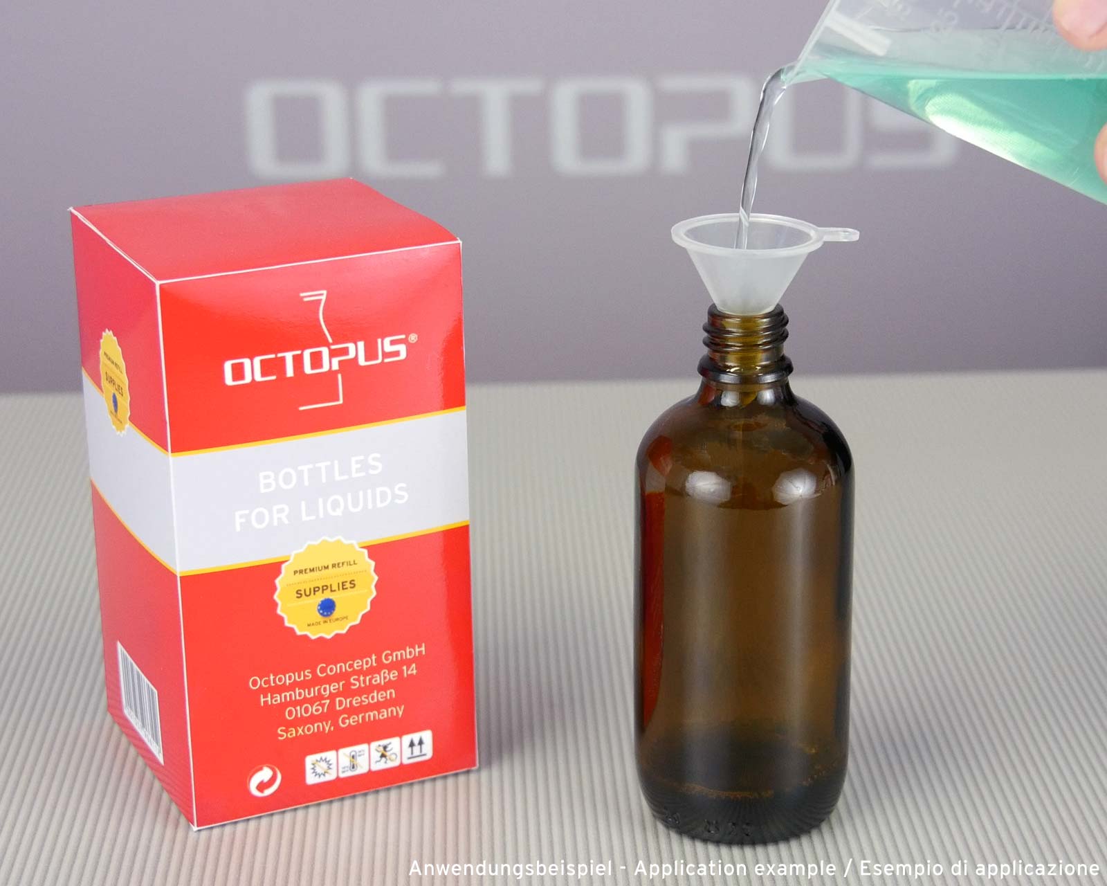 Der im Set enthaltene Mini-Trichter hilft Ihnen dabei, Flüssigkeiten sauber in die Flaschen umzufüllen.