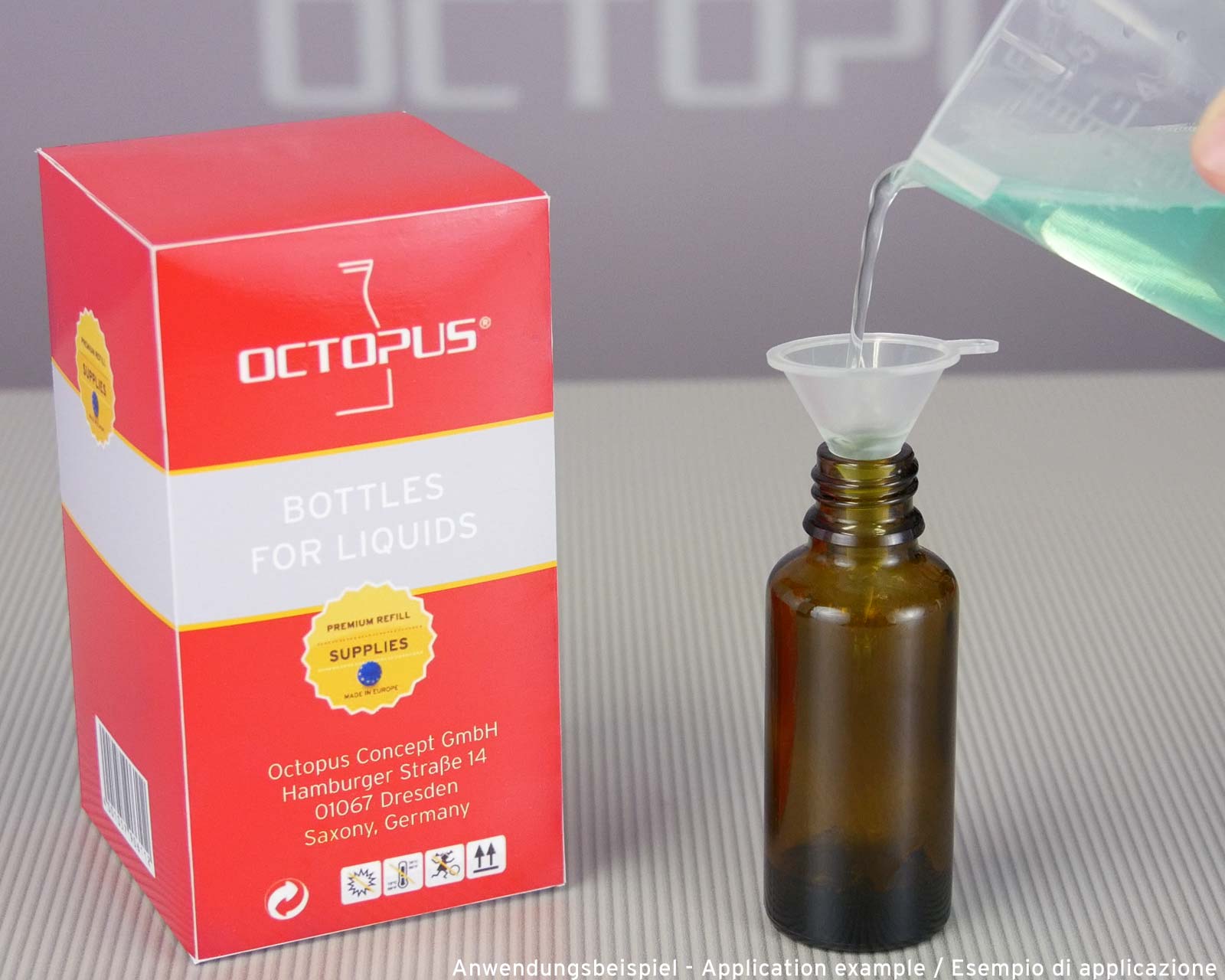 Der im Set enthaltene Mini-Trichter hilft Ihnen dabei, Flüssigkeiten sauber in die Flaschen umzufüllen.