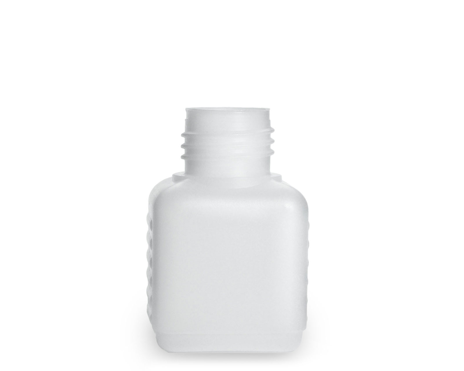 Eigenschaften: "50 ml Plastikflasche aus HDPE mit 25 mm Gewinde"