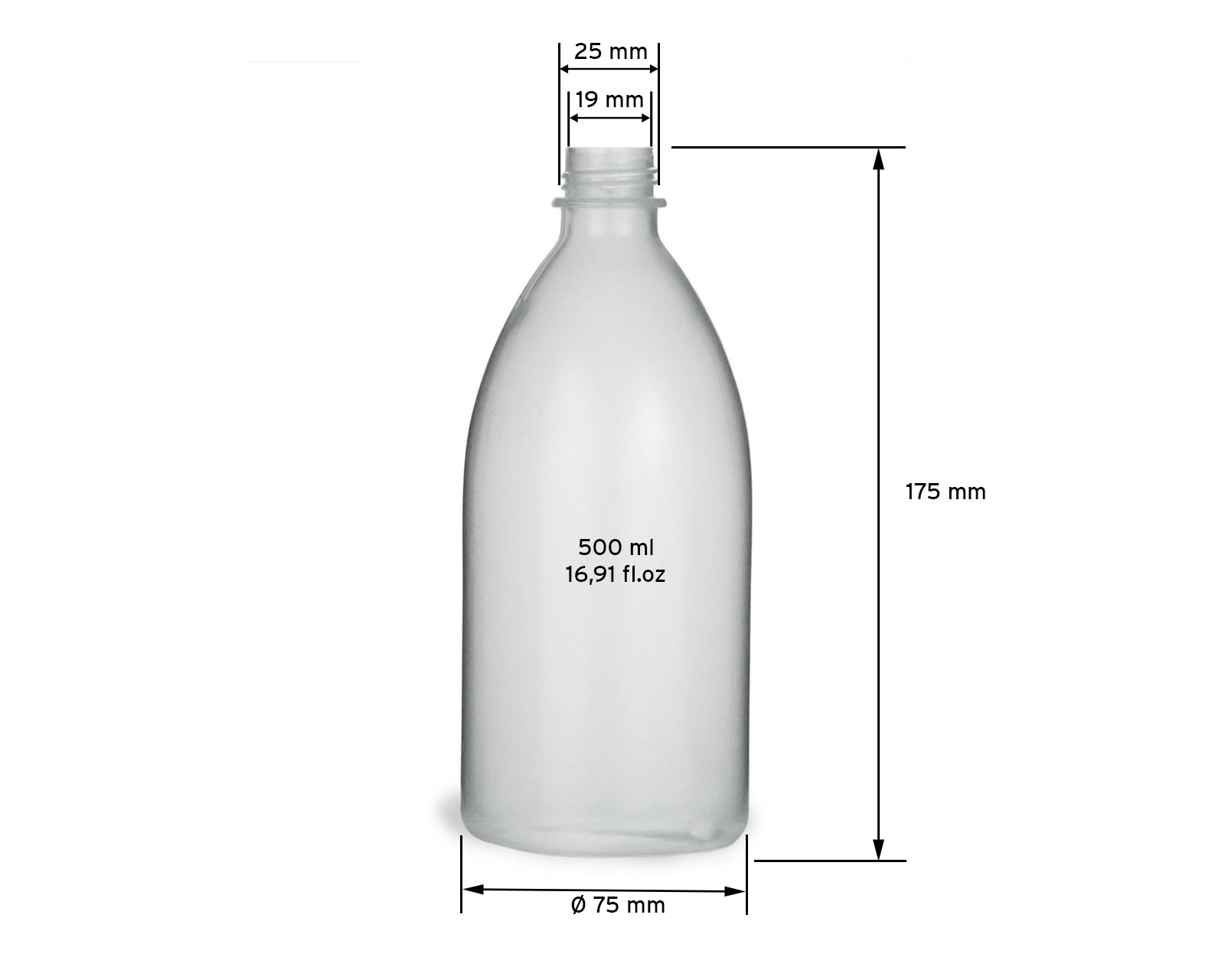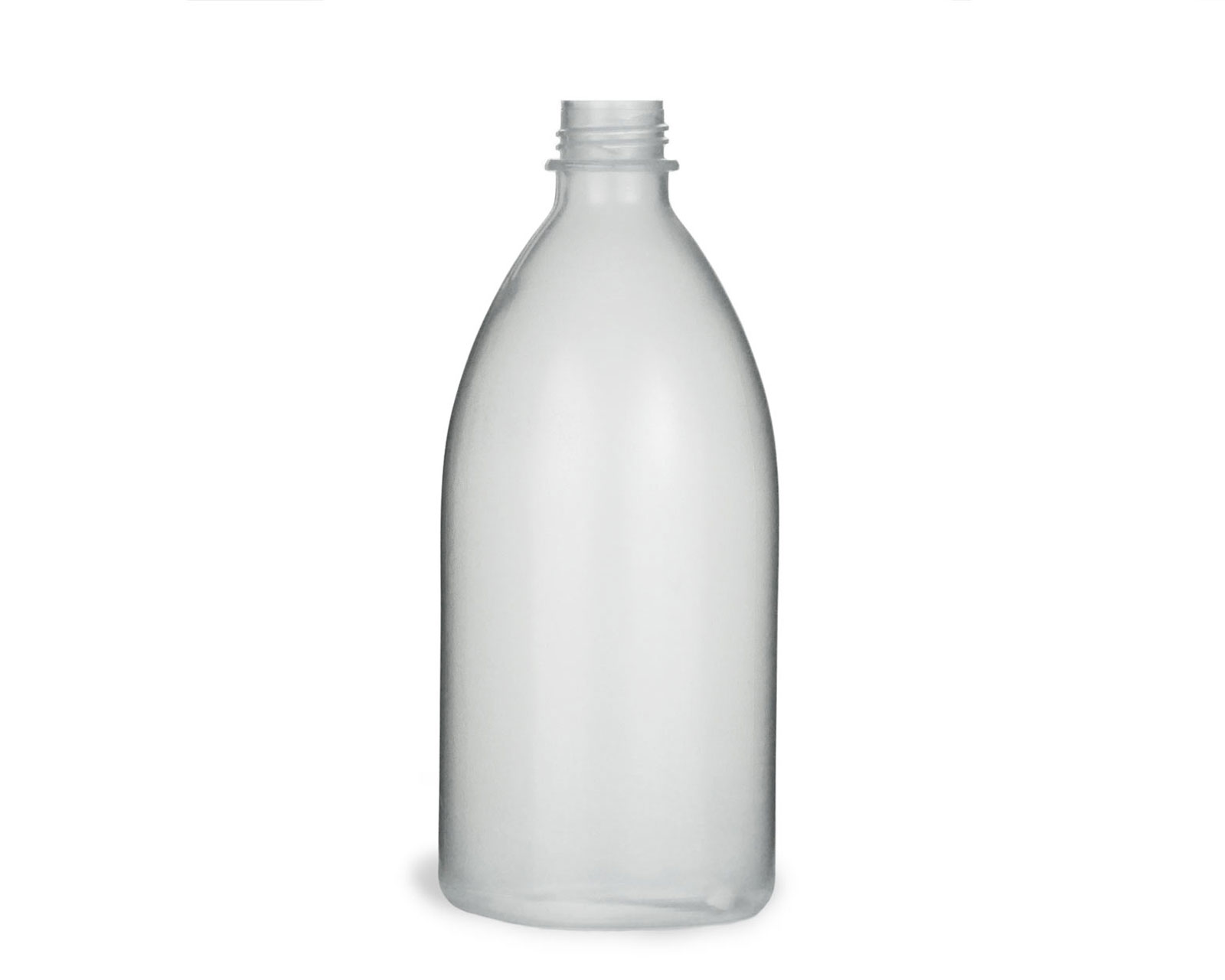 Eigenschaften: "500 ml Quetschflasche aus LDPE mit 25 mm Gewinde, natur, transparent, leer, ohne Deckel"