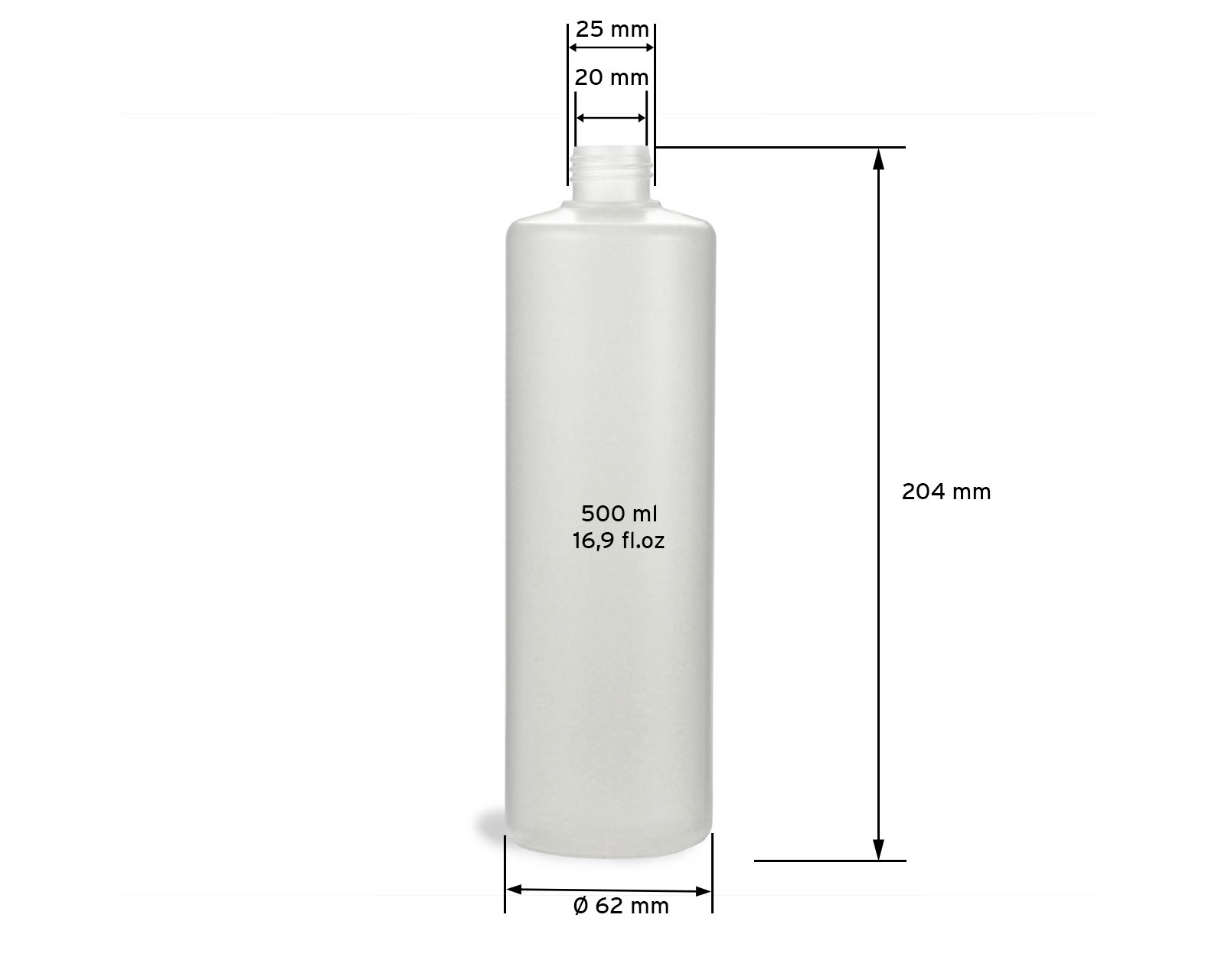 Eigenschaften: "500 ml Rundflasche mit 25 mm Gewinde aus HDPE"