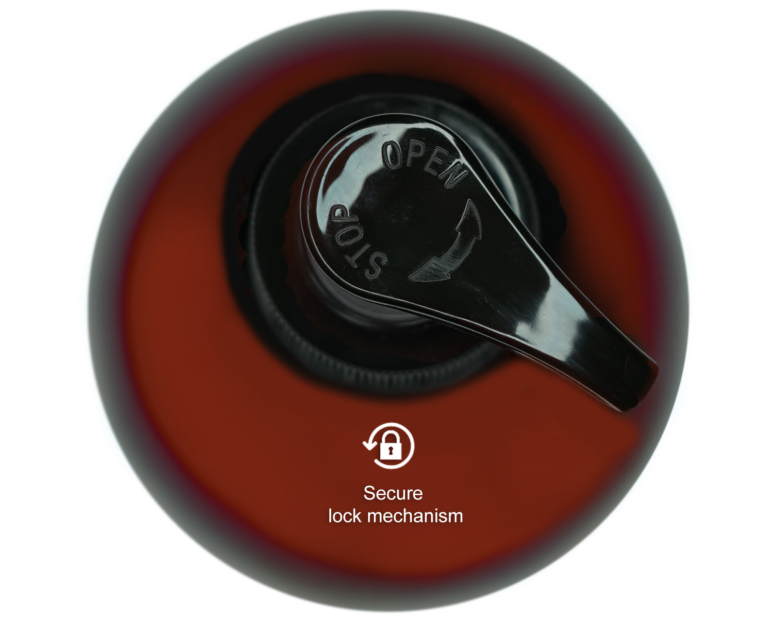 Die Pumpe des Spenders lässt sich durch Drehen verriegeln, was beim Transport ein unbeabsichtigtes Betätigen und Auslaufen der Flüssigkeit verhindert.