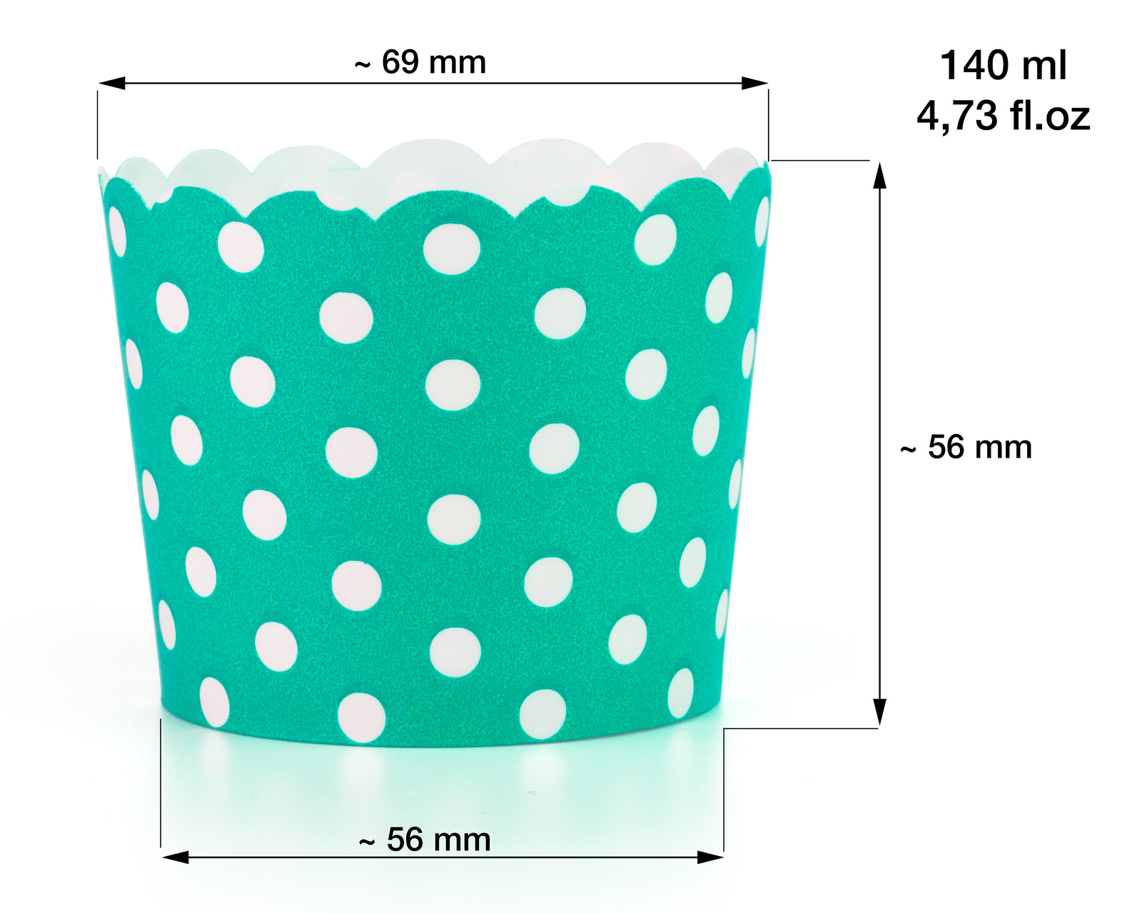 Maße (L x B x H): Ø Oben: 69 mm, Ø Unten: 58mm, H: 56mm
