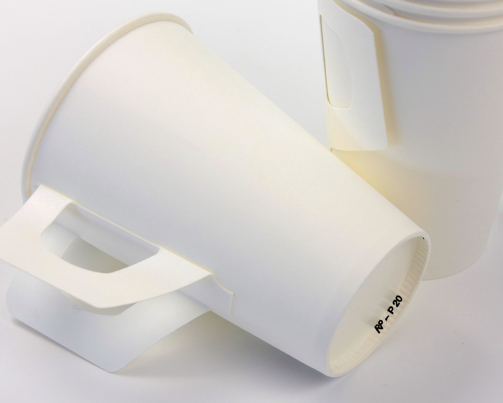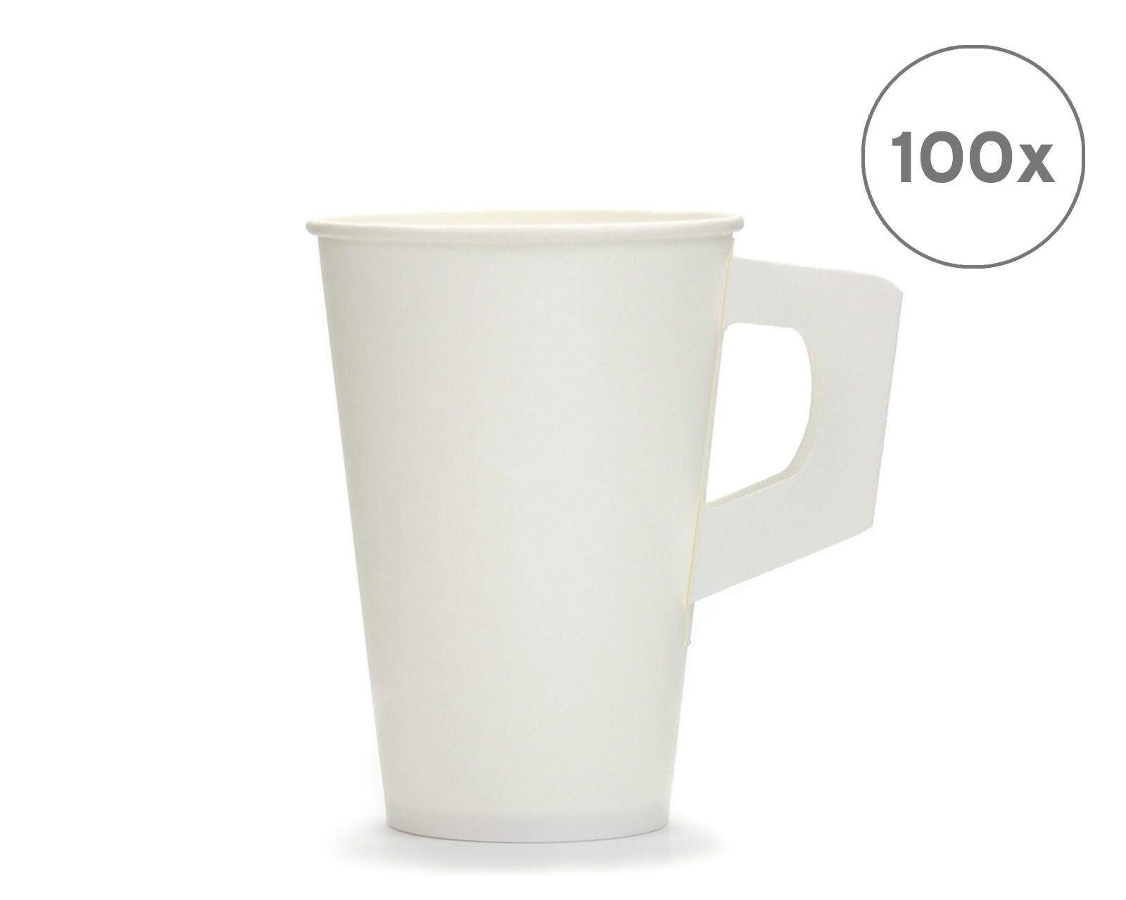 80 Stück Qualitäts-Trinkbecher mit Henkel aus extra fester Pappe mit Innenbeschichtung in Weiß