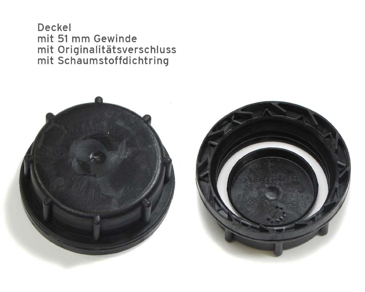 Eigenschaften: "Kanisterverschluss für DIN 51 Gewinde, schwarz mit PE-Schaumdichtungsring und Originalitätsring"
