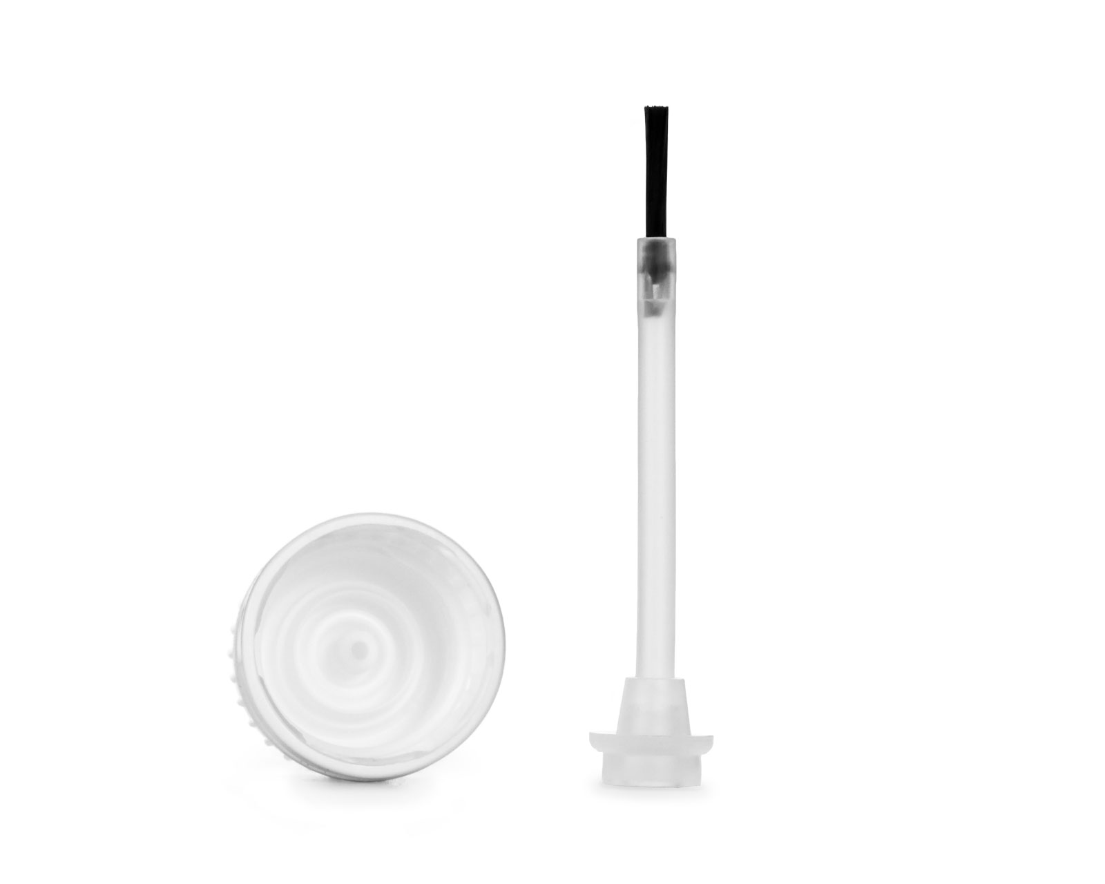 Pinselverschluss aus PE, weiß, G18, Originalitätssicherung, 55 mm Länge für 10 ml Braunglasflaschen