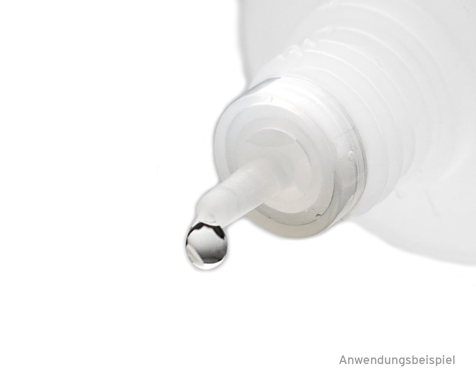 In Verbindung mit unseren Quetschflaschen aus weichem LDPE eignen sich diese Verschlusskappen ideal für alle Flüssigkeiten, die nicht in Kinderhände gelangen sollten. Der Tropfeinsatz wird dafür einfach nach dem Befüllen der Flaschen aufgesteckt und hält auch bei starkem Herausdrücken des Inhalts fest auf der Flasche. Die Verschlusskappe verschließt die Flasche dann 100 Prozent dicht und sorgt für einen sichere Transportfähigkeit.